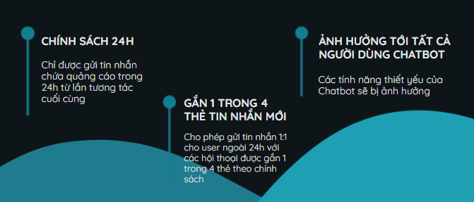 Sự thay đổi: Quy tắc 24+1 sẽ bị tắt đi. Nghĩa là sau 24h các thông báo bằng chatbot của doanh nghiệp sẽ không được chấp thuận. Các nội dung gửi sau 24h sẽ được coi là không hợp lệ nếu không các TAG (Tag mình sẽ nói ở dưới).